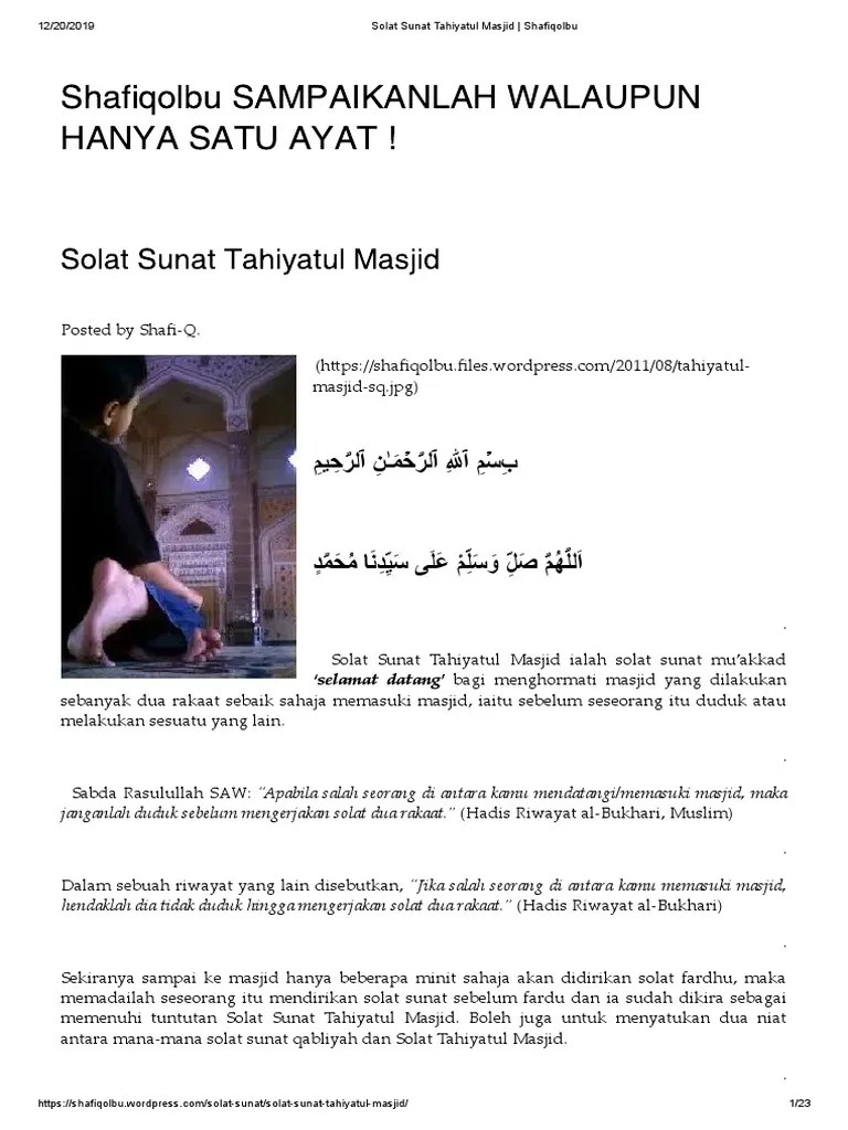 Ini adalah panduan melakukan solat sunat tahiyatul masjid secara ringkas dan lengkap.
